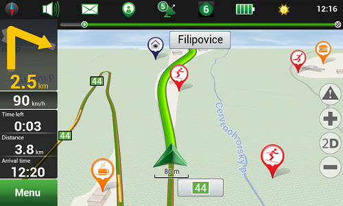 The “Alps”, “Caucasus”, “Carpathians” and “Pyrenees” navigation map packages contain all necessary information, which may be necessary for a tourist during a journey! Highly detailed plans of cities, towns and other settlements include a wide range of points of interest: hotels, restaurants, cafes and bars, sites of tourist attraction, shops, petrol stations and maintenance facilities, hospitals and chemists and many others, which will help you to find your way in a new country and have a great time, and instantaneous route calculation taking into account traffic situation will help to reach the necessary point in the shortest possible time.