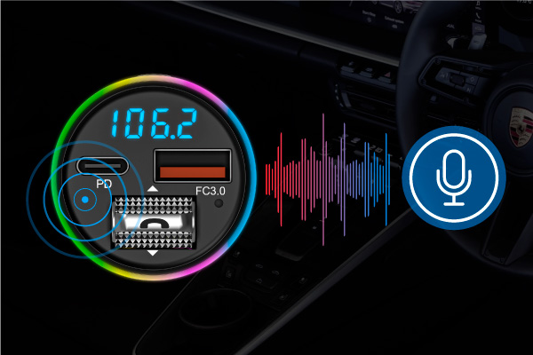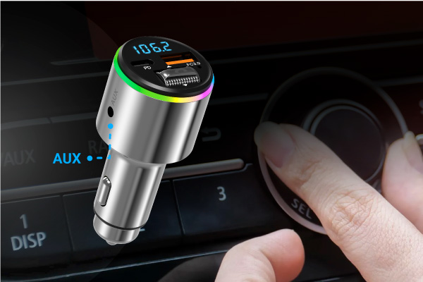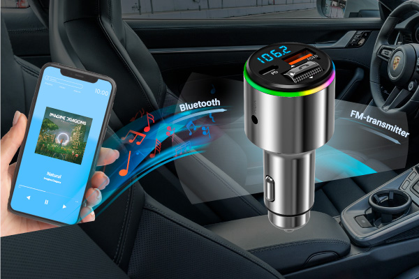 The FM-transmitter comes with an AUX cable that can be plugged either into your mobile device or car. In the first case you will not need to use Bluetooth, so it would be a matter of FM signal to broadcast your music or voices of beloved ones to the car’s sound system. In the second scenario you will not need FM signal, as music or calls will be transmitted into your car via a cable. Choose the option that best suits you and enjoy crystal-clear sound quality & great microphone responsiveness.