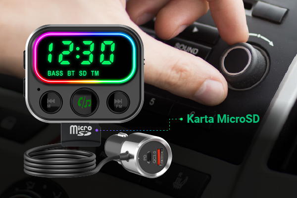Wskazówka: w szczególności karty microSD są bardzo dobrą opcją do przechowywania muzyki. Nie ma konieczności zajmowania cennego miejsca w smartfonie, a ulubione utwory możesz wygodnie zabrać ze sobą, gdziekolwiek się wybierasz. Ponadto mała karta pamięci całkowicie znika w gnieździe karty nadajnika FM – oszczędza miejsce i jest wygodna w użytkowaniu.