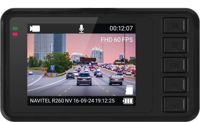 NAVITEL R260 NV posiada 2-calowy wyświetlacz IPS o szerokim kącie widzenia, zapewniający doskonałą czytelność z każdego miejsca w samochodzie. Urządzenie jest zasilane z sieci pokładowej auta przez kabel USB-C. Wideorejestrator obsługuje karty microSD klasy U3 i wyżej o pojemności do 256 GB.
