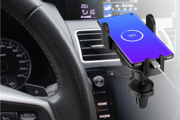 Držák podporuje standard bezdrátového nabíjení Qi až do 15 W a umožňuje dobití baterie telefonu v krátkém čase.