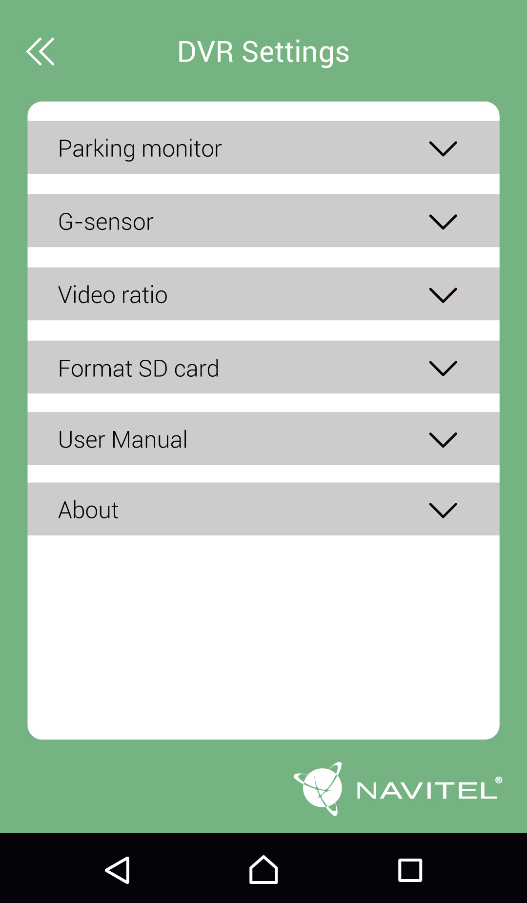 Navitel R1000 Appmanaging the settings of the DVR will fall directly into your hands. Change the settings of NAVITEL R1000 dash camera from the convenience of your smartphone or tablet. The application also allows you to format the DVR's memory card.