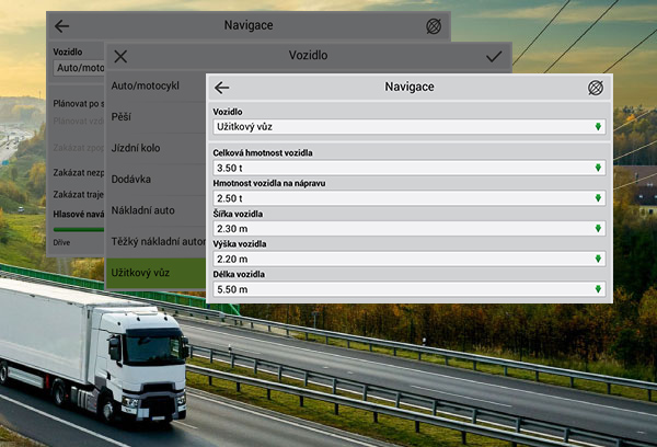 Všechny navigace Navitel mají funkci přednastavení parametrů vozu, takže jsou přímo ideální pro použití v nadrozměrných vozidlech a nákladních automobilech.