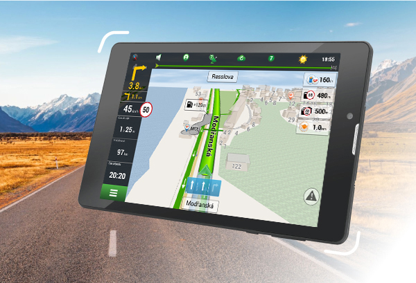 Tablet NAVITEL T505 PRO má předinstalované mapy 47 zemí světa. Mapy obsahují aktuální informace o dopravních křižovatkách, městské infrastruktuře a radarech.