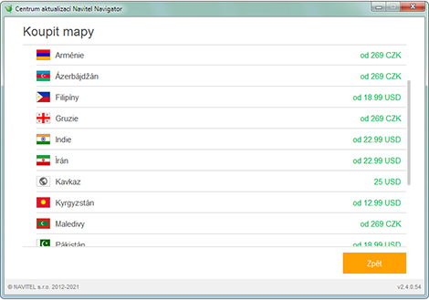 Klikněte na tlačítko Koupit a vyberte mapu či mapový balíček, který chcete zakoupit.