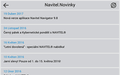 Prostřednictvím služby Navitel.Novinky budete dostávat důležité novinky o aktualizacích a program a upozornění na speciální nabídky a slevy.