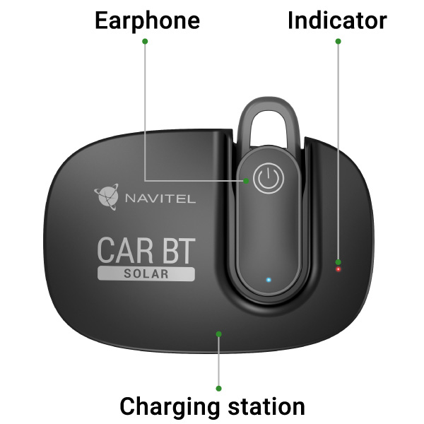 NAVITEL SOLAR CAR BT is a multifunctional Bluetooth headset with the ability to recharge from solar energy.