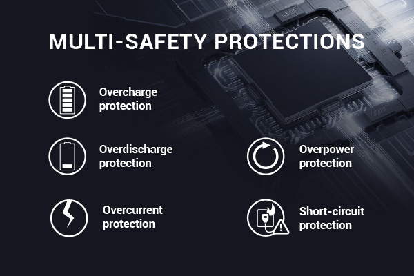 NAVITEL NS1000 has a built-in excellent Battery Management System (BMS), protect devices through temperature control, overvoltage protection, overcurrent protection and short circuit protection functions. Detects short circuits and overloads when performing incorrect operations. Also, the Pure Sine Wave AC inverter can better protect your sensitive devices, ensuring the safety of you and your devices, preserve battery life.