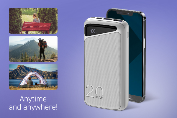 NAVITEL PWR10 MX WHITE is a portable external battery with a capacity of 10000 mAh. Two USB-A ports and a reversible USB-C port allow you to charge multiple devices at the same time. A capacity of 10,000 mAh is enough for several cycles of recharging a tablet, smartphone, smart watch or player. For visual control of the remaining charge level, a digital display is located on the case.