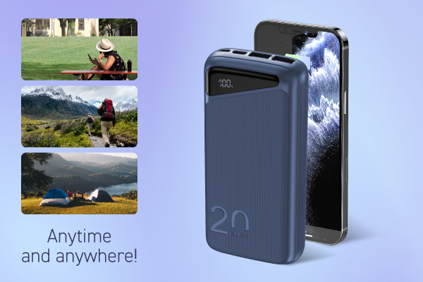 NAVITEL PWR20 MX is a portable external battery with a capacity of 20000 mAh. Two USB-A ports and a reversible USB-C port allow you to charge multiple devices at the same time. A capacity of 20,000 mAh is enough for several cycles of recharging a tablet, smartphone, smart watch or player. For visual control of the remaining charge level, a digital display is located on the case.