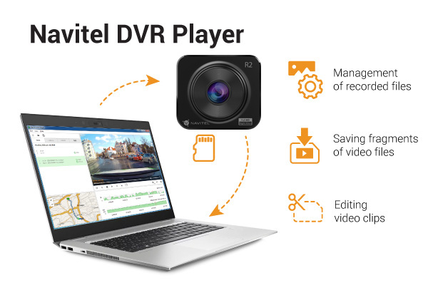NAVITEL R2 will be your reliable assistant on any road at any time. The Dash Cam records Full HD (1920x1080) video at 30 frames per second, and a panoramic 140° angle allows recording of a wide portion of the road ahead of a car, including neighboring lanes and the roadside.