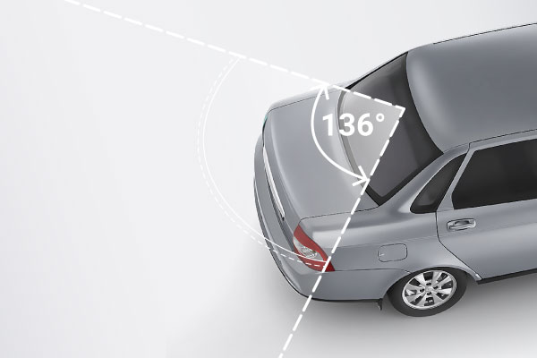The included Full HD rearview camera allows you to record events occurring behind the car. The rearview camera is mounted on the rear window of the car* using 3M tape and has a 136-degree viewing angle, capturing even the "blind" zones. The rear camera lens supports 360-degree rotation, which allows, if necessary, to take pictures inside the car with it.