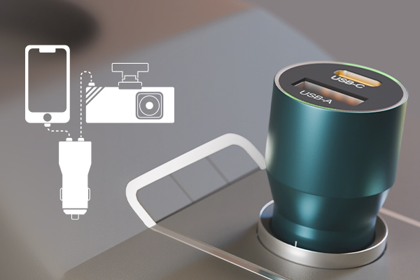 The dash camera is designed to be powered via either a standard 12V car socket or a regular USB port. Its car charger is equipped with an additional USB-C port that enables simultaneous DVR operation and device charging.
