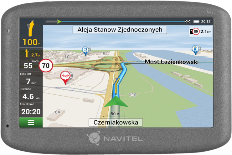 Navitel Navigator software offers turn-by-turn voice directions and visual prompts to help you stay focused on driving. The user will be informed if they are exceeding the speed limit or approaching a traffic control camera.