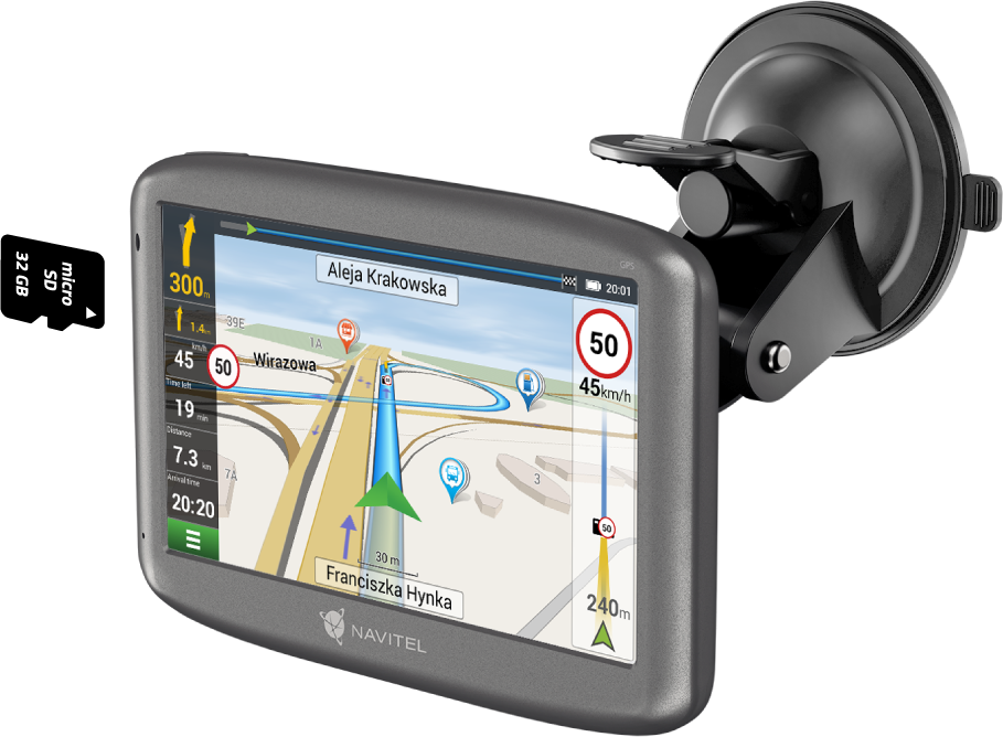 Thanks to Navitel Navigator software the GPS device will ensure a stable and glitch-free route building in any trip. NAVITEL E500 allows for downloading additional maps - the deivce has 8 GB of internal memory and a slot for microSD cards of up to 32 GB.