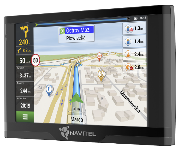 Every map includes residential and industrial infrastructure with address search and detailed road network with traffic direction, interchanges, roundabouts, and other relevant information. There is also a huge POI database (filling stations, ATMs, restaurants, etc.) and an extensive SPEEDCAM database.