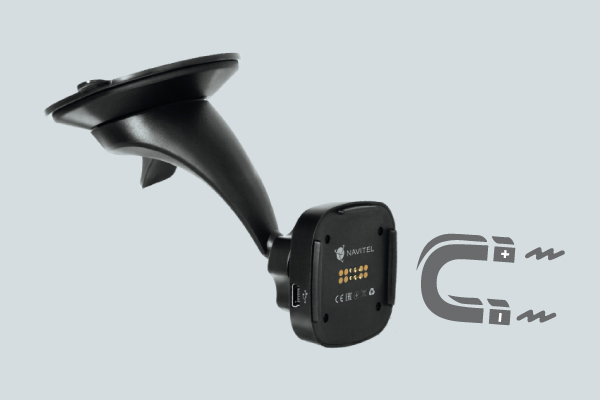 The key advantage of NAVITEL E500 MAGNETIC is a revolutionary magnetic mount with continuous power supply. The suction cup mount base that is included in the package attaches firmly to the windscreen of the car. Through the USB port, it is connected to the car lighter socket via NAVITEL car charger that is also included.