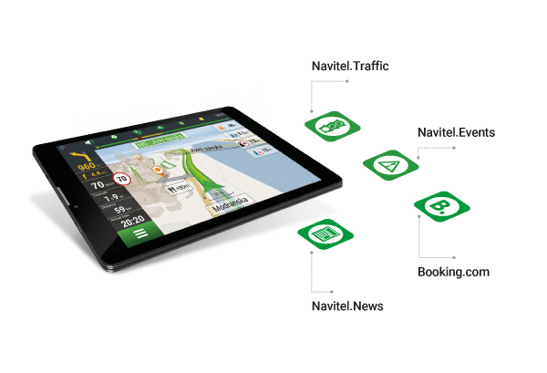 The NAVITEL T500 3G tablet is preloaded with maps of 47 countries. Maps contain up-to-date information about traffic intersections, urban infrastructure and video recording cameras.