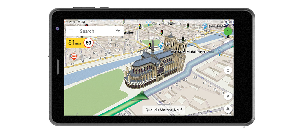 The 7” display allows to position the device however you want inside your car. Its high-brightness 1024x600 px. IPS panel makes the screen easily readable at any angle, so the tablet can be placed at a convenient distance from the steering wheel. NAVITEL T797 4G supports the most poplar video and audio formats, meaning it will come in handy not just on the road, but at home as well.