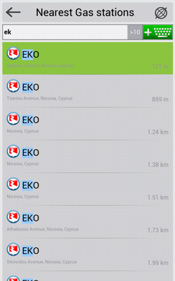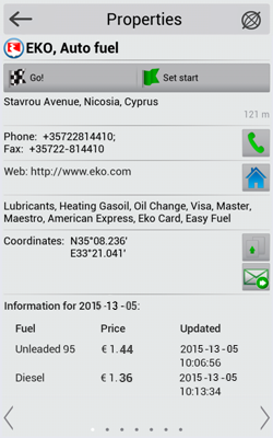Para ver información sobre puntos de información necesitados, puede encontrarla en el menú "más cercano" o encontrar el punto en el mapa y abrir la información detallada sobre este punto. Si la conexión de Internet está encendida, los datos necesitados se descargarán automáticamente.