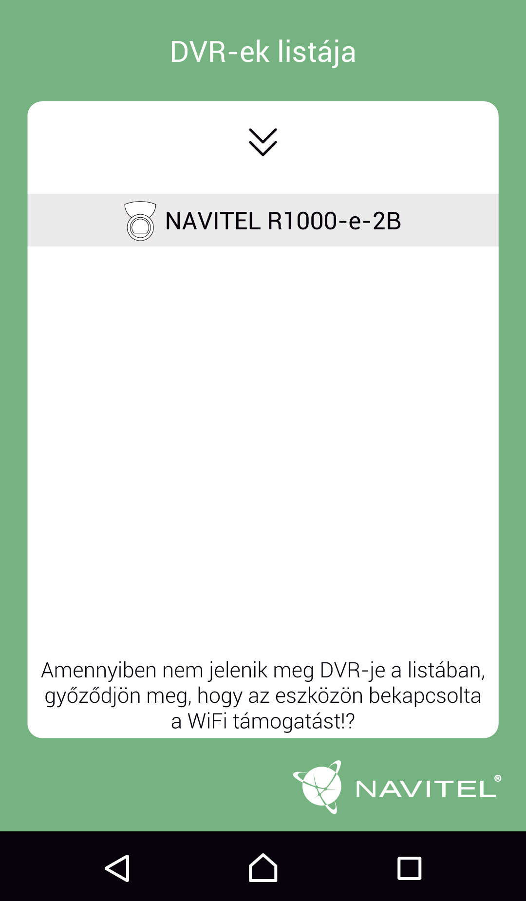 3. Csatlakozzon mobil eszközével a DVR WiFi hálózatához - az elérhető vezeték nélküli hálózatok listájában, mint DVR NAVITEL r1000-e-XX jelenik meg. A csatlakozáshoz használja a szélvédőkamera beállítások menüjének WiFi CARCAM pontja alatt megadott jelszót.