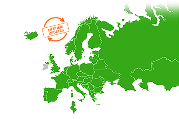 NAVITEL E500 MAGNETIC TMC is delivered with pre-installed maps of 47 countries.