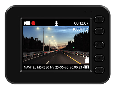 NAVITEL MSR550 NV nagrywa w jakości Full HD, w 30 klatkach na sekundę. Pliki zapisywane są w formacie .MOV na karcie pamięci o pojemności do 64 GB. Wideorejestrator wyposażono w 2-calowy ekran TFT o rozdzielczości 320x240. Sensor optyczny z obsługą night vision GC2063 odpowiada za wysoką jakość nagrań przy słabych warunkach oświetleniowych. Wbudowany czujnik przeciążeń G-Sensor jest aktywowany w przypadku zderzenia lub nagłego manewru. Urządzenie zapisuje materiał nagrany podczas wypadku i zabezpiecza go w celu późniejszego wykorzystania. Funkcja trybu parkingowego zapewnia samoczynne uruchomienie się kamery i rejestrację filmu, w przypadku wykrycia kolizji (wstrząsu).