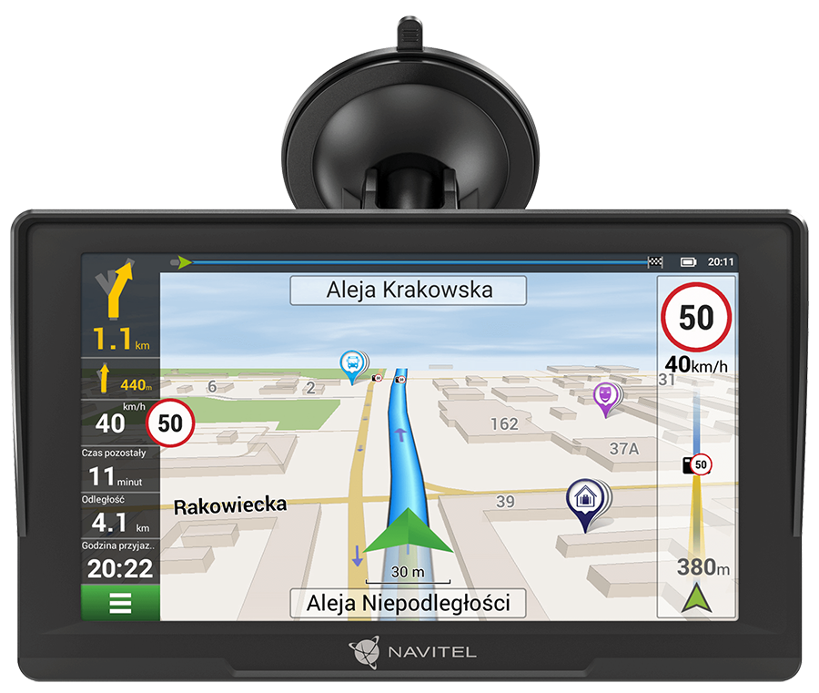NAVITEL E777 TRUCK oferuje rozszerzone ustawienia nawigacyjne dla pojazdów ciężkich, np. umożliwiając wprowadzenie wagi i wymiarów pojazdu. Nawigacja buduje trasy z uwzględnieniem ograniczeń drogowych dla każdego typu ciężarówek, zapewniając płynną jazdę do wyznaczonego celu.