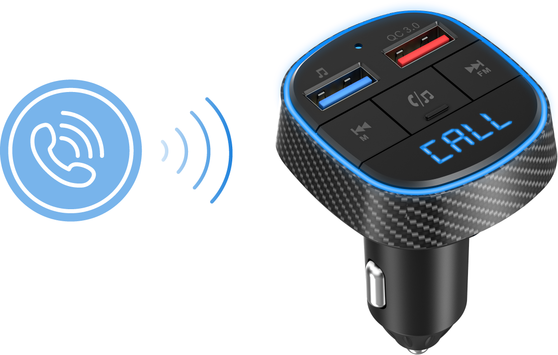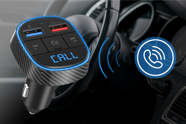 Zintegrowany mikrofon umożliwia korzystanie z nadajnika Bluetooth w samochodzie jak z zestawu głośnomówiącego. Jeśli otrzymasz połączenie przychodzące podczas słuchania muzyki, urządzenie automatycznie przełączy się w tryb głośnomówiący. Aby odebrać i zakończyć połączenie, wystarczy nacisnąć przycisk. W ten sposób możesz dzwonić podczas jazdy i nadal w pełni koncentrować się na ruchu ulicznym.