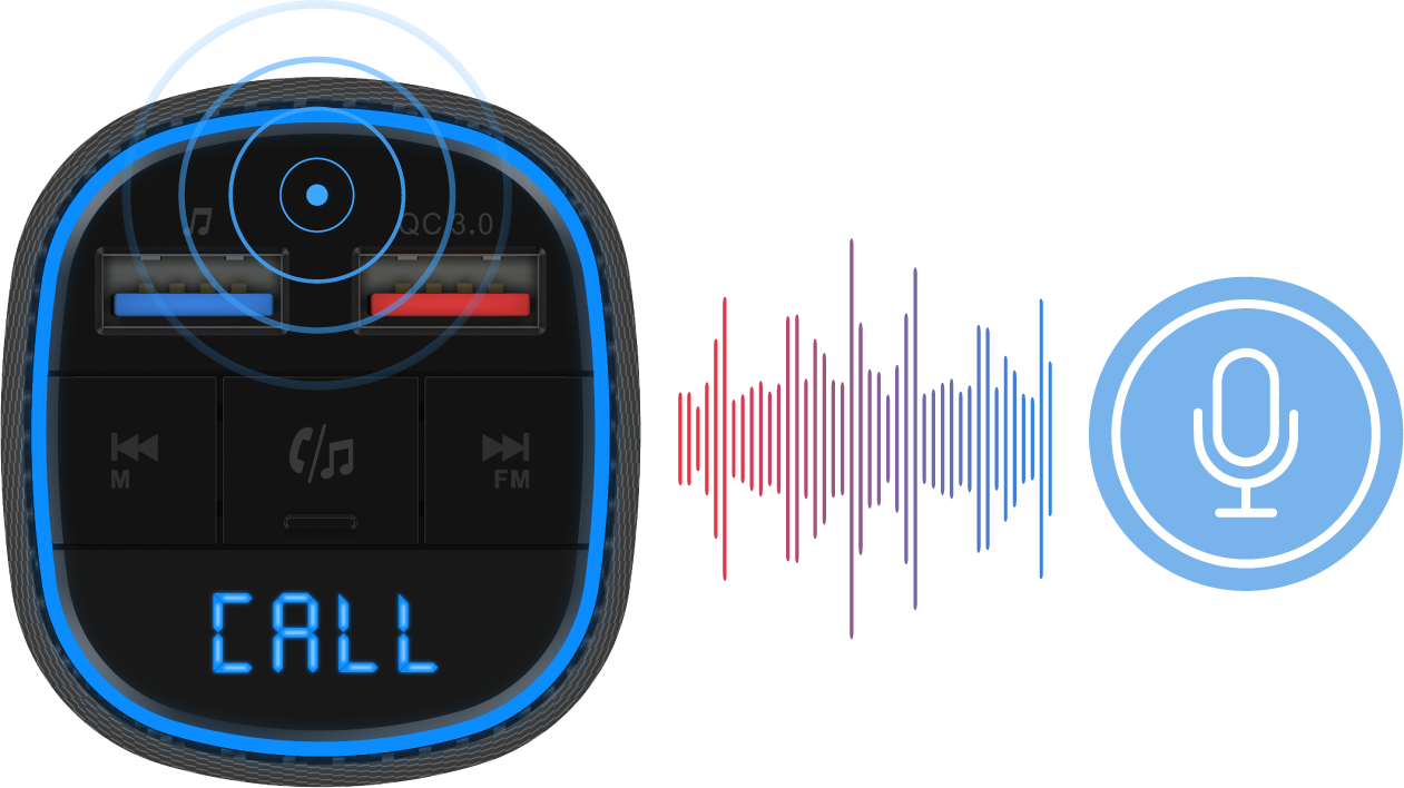 Wbudowany mikrofon obsługuje technologię tłumienia szumów, aby skutecznie redukować hałasy. Zapewnia krystalicznie czyste połączenia w celu zmniejszenia zakłóceń. Wystarczy jedno kliknięcie przycisku, aby odebrać/ponownie wybrać/rozłączyć lub odrzucić połączenie. Możesz przy tym patrzeć na drogę, zachowując bezpieczeństwo jazdy.