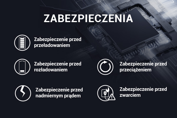 Zarządzania bateriami (BMS), chroniąc urządzenia przed wysoką temperaturą, przed przepięciem, przetężeniem oraz zwarciem. System wykrywa zwarcia i przeciążenia podczas wykonywania nieprawidłowych operacji. Ponadto falownik czystej fali sinusoidalnej może lepiej chronić wrażliwe urządzenia, zapewniając bezpieczeństwo i zachowując żywotność baterii.