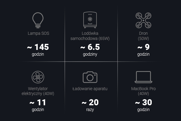 NAVITEL NS500 wyposażony został w gniazdo AC (230V, 500W), 2 porty USB, 2 porty USB-C, 2 porty DC, 1 port samochodowy oraz funkcję ładowania bezprzewodowego 15W. Zapewnij stabilne i bezpieczne zasilanie dla większości swoich urządzeń (poniżej 500W), takich jak laptopy, telefony, aparaty fotograficzne, drony, latarki, wentylatory, lodówki samochodowe itp. NS500 sprawdzi się jako źródło energii podczas aktywności na świeżym powietrzu (kemping, podróż z przyczepą kempingową, wędkarstwo, łowiectwo, żeglarstwo) i na wypadek sytuacji awaryjnych w domu (przerwa w dostawie prądu, huragan).