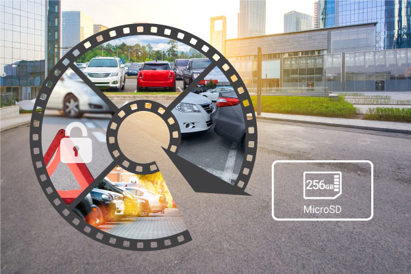 Wideorejestrator oferuje wysoką jakość wideo przy kompaktowym rozmiarze plików, aby zaoszczędzić miejsce na karcie microSD o pojemności do 256 GB. Materiał filmowy nagrywany jest w pętli. Najstarsze nagrania nadpisywane są automatycznie nowymi, dzięki czemu nie musisz ręcznie usuwać filmów.