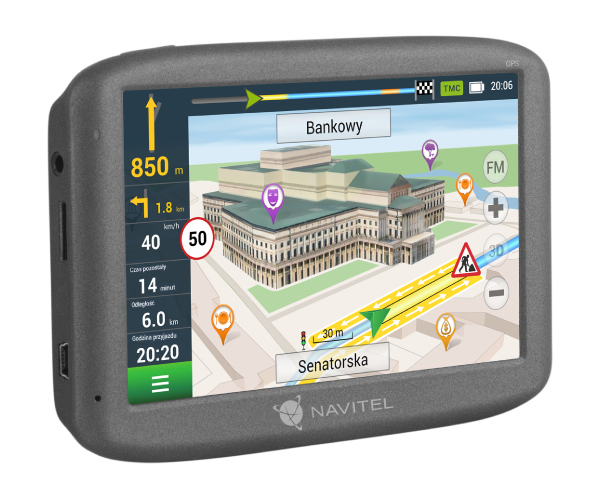 NAVITEL E200 TMC to nawigacja wyposażona w technologię, która zapewnia dystrybucję aktualnych informacji o warunkach na drodze poprzez radio FM-RDS. Kierowca otrzymuje w czasie rzeczywistym dane o korkach i niekorzystnych sytuacjach drogowych, istotne przy planowaniu trasy i wyborze alternatywnych opcji.