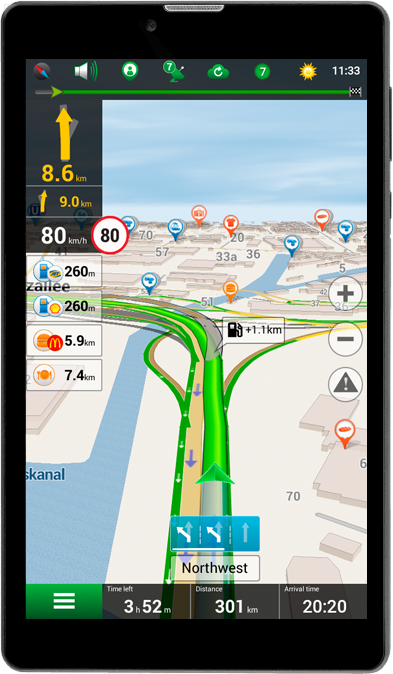 Każda mapa zawiera mieszkalną i przemysłową infrastrukturę z możliwością wyszukiwania adresu oraz szczegółowej sieci dróg wraz z kierunkiem ruchu, skrzyżowań, rond a także innych istotnych informacji. Istnieje także ogromna baza punktów POI (stacje paliw, bankomaty, restauracje, etc) oraz rozbudowana baza fotoradarów.