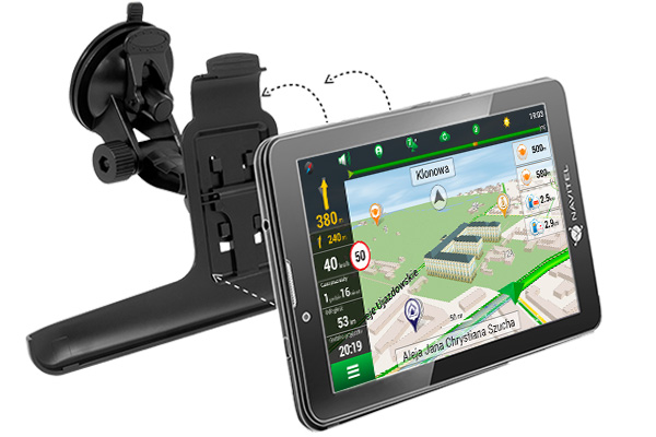 Uchwyt, który jest dołączony do tabletu pozwala na łatwy i szybki montaż urządzenia w samochodzie.