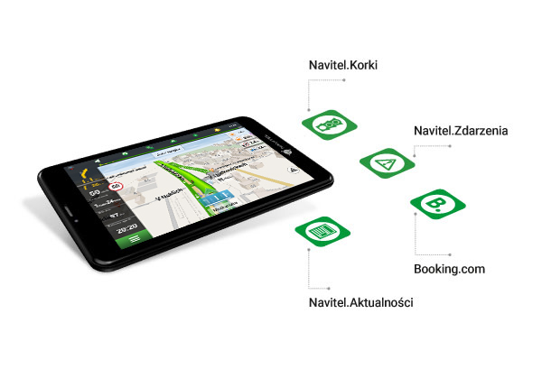 Dostęp do Internetu umożliwi korzystanie z usług Navitel, takich jak: Navitel.Korki, Navitel.Wydarzenia, Navitel.Aktualności, oraz rezerwację hotelu za pośrednictwem Booking.com.