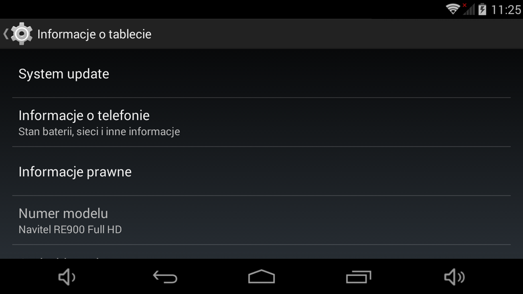 By pobrać aktualizację przejdź z ustawień Wi-Fi do menu 'Aplikacje > Ustawienia > Informacje o tablecie'. Wciśnij 'System update' i kliknij w dostępne aktualizacje. Potwierdź by rozpocząć pobieranie.