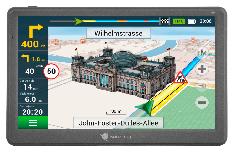 Vodič vozidla dostáva všetky dôležité informácie pre bezpečnú a rýchlu jazdu: tri alternatívne trasy, z ktorých si môže vybrať, hlasové povely, jazdné pruhy, ako aj upozornenia týkajúce sa rýchlostných kamier. Navigácia informuje používateľa o rýchlostných obmedzeniach v každom úseku cesty a informuje ho taktiež v prípade prekročenia tohto limitu.