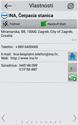 Pre zobrazenie informácií o požadovanom bode POI je nutné tento bod nájsť pomocou vyhľadávania medzi objektmi "Najbližší" alebo zvoliť bod na mape "Navitel" a potom otvoriť podrobnosti o tomto bode POI. Aktuálne údaje vzťahujúce sa k tomuto bodu POI budú automaticky stiahnuté do zariadenia pri aktívnom internetovom pripojení.