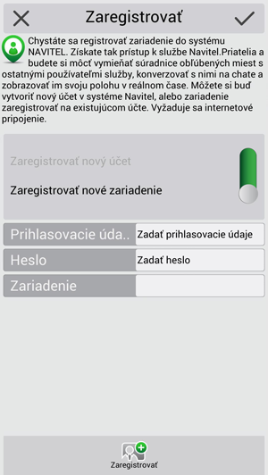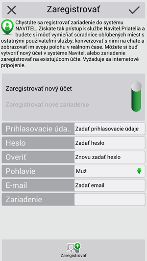 Aby bolo možné túto službu využívať, je nutné sa zaregistrovať na https://navitel.cz/sk a mať aspoň jedno zariadenie s aktivovanou licenciou pre aplikáciu Navitel Navigator. Toto zariadenie by malo byť pridané do sekcie "Moje zariadenia" vo Vašom osobnom účte na webových stránkach.